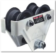 Wheels: High quality pressed steel wheels, carbonized and hardened to ensure long life, are offered on the standard trolleys. The wheels have built-in ball bearings to provide smooth easy rolling action and compound tread design make them suitable for operation on wide flange beams as well as American Standard I-beam tapered flange beams. Deep flanges help prevent wheels from climbing up onto the track. Pressure lubricating fittings in the axles allow easy lubrication.